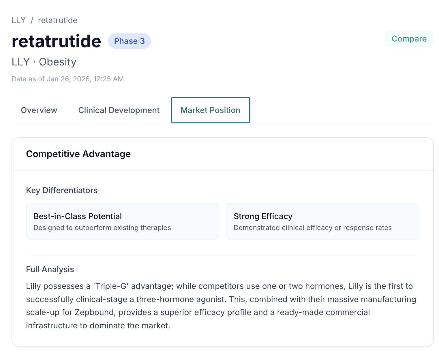 Get detailed analysis on individual drugs—competitive positioning, key differentiators, clinical efficacy, and what it all means for the investment thesis.